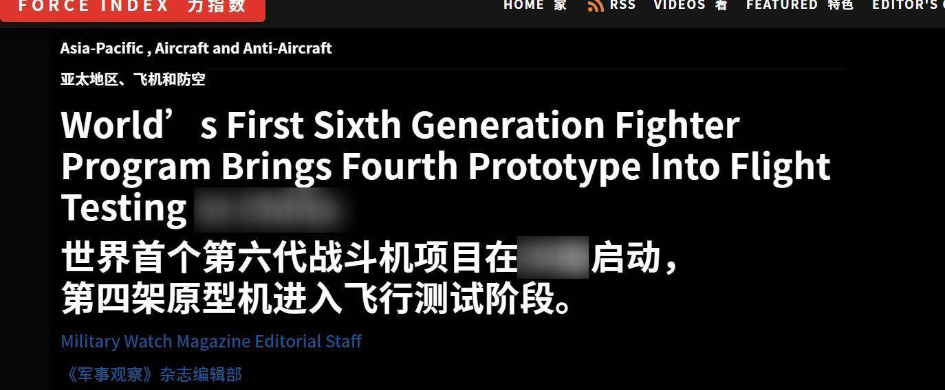 美媒,歼-36的第四架原型机也已经开始试飞(美媒《军事观察》报道截图)